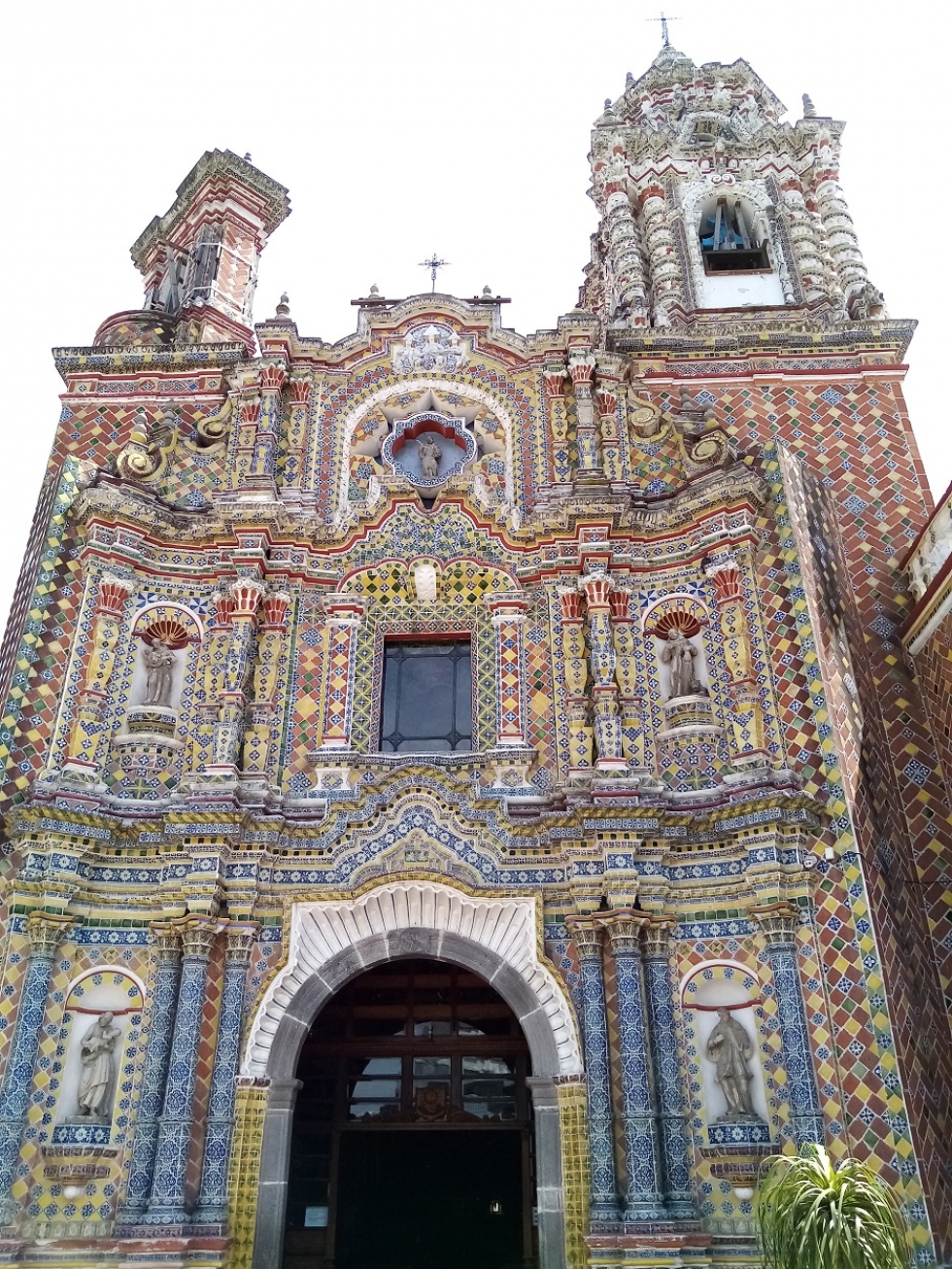 El templo de San Francisco Acatepec, una obra maestra del estilo barroco, fue construido en el siglo XVIII, aproximadamente en 1730, y entre 1650 y 1750 se realizó la talavera poblana y mosaicos con que se decoró, predominando los colores amarillo, verde, naranja y rojo.