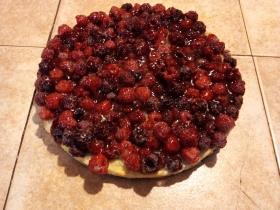 Tartas de diferentes frutas (de temporada, en almibar o bayas) para aproximadamente 10 a 12 personas.